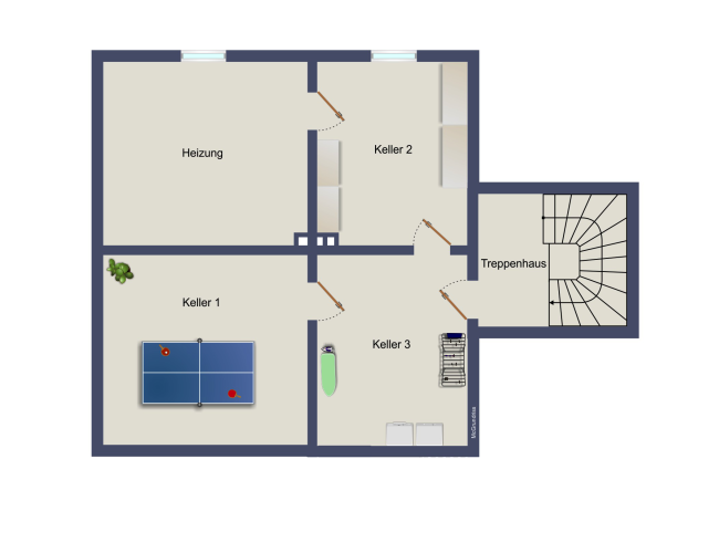 Fußbodenheizung, elektrische Jalousien, Einbauküche mit Geräten, Terrasse, DSL-Anschluss mit einer Geschwindigkeit von 48 MBit, Kellerraum, Fahrradraum, PKW Stellplätze, Sauna, Biokläranlage