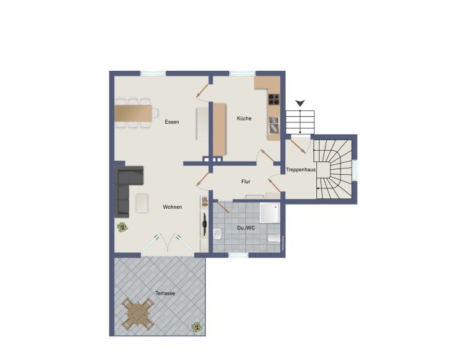 Die Erdgeschosswohnung hat zusätzlich einen direkten Zugang zur Terrasse, die nahtlos in den liebevoll angelegten Garten übergeht.