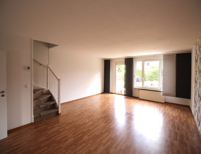 helles Wohnzimmer mit Zugang zu den oberen Etagen.