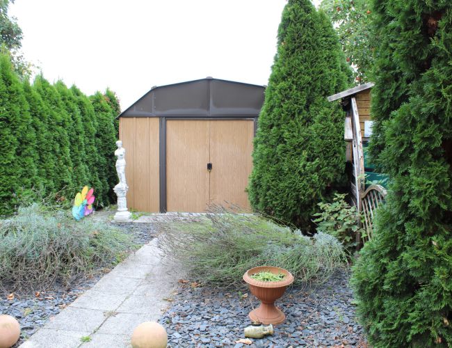Im Außenbereich gehört ein PKW�Stellplatz und ein kleines Gartenhaus zum Anwesen.